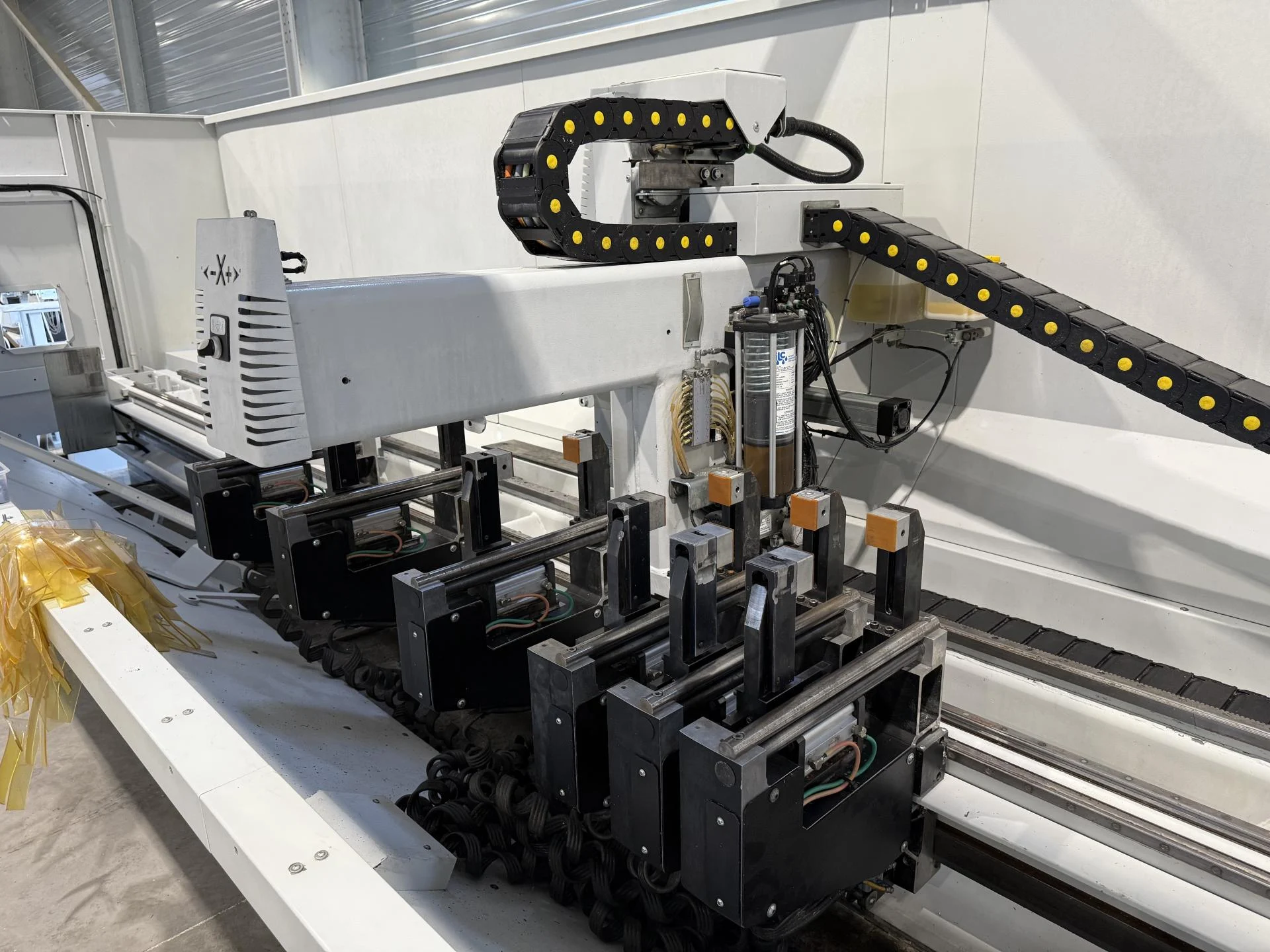 Sur demande, disponibilité d'un système qui adresse le lubrifiant en automatique sans nécessité d'arrêts machine et en affichant à l'écran un message qui signale que le niveau minimum du lubrifiant dans le réservoir est atteint.