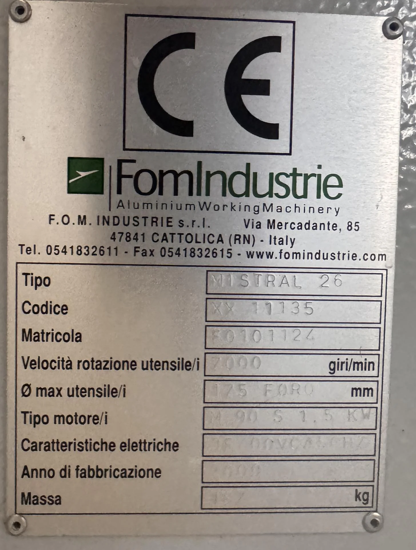 Abouteuse à angle variable | FOM | MISTRAL 26 | Année 2009
